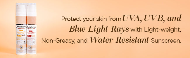 With SPF 50 PA+++, the Astaberry Tinted + Matte Sunscreen provides broad-spectrum protection from the sun. It protects the skin from the harmful UVA rays that causes early ageing, UVB rays that cause sun burning and Blue Light from the devices and screens that damage the skin barrier & speed up ageing.